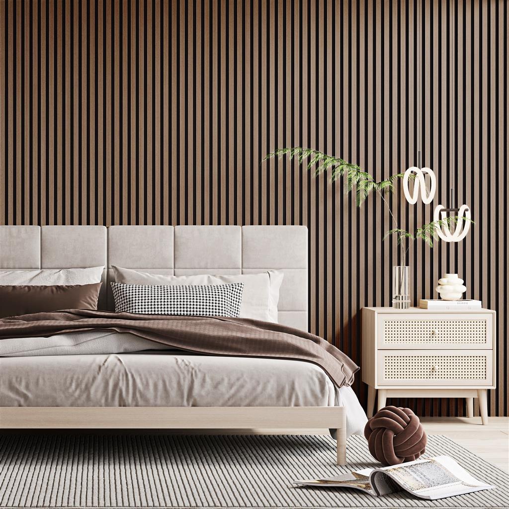 3. Wysokie wartości akustyczne: Akustyczna płyta ścienna z dębu zapewnia doskonałą izolację dźwiękową. To sprawia, że jest to idealny wybór do pomieszczeń, w których redukcja hałasu jest kluczowa, takich jak salony, biura domowe, a nawet przestrzenie komercyjne.